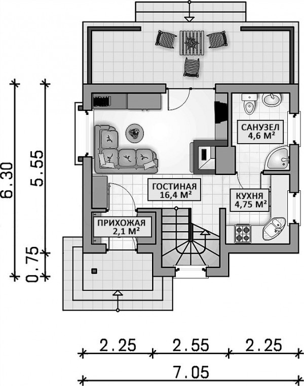 Дом 7 на 6 с мансардой